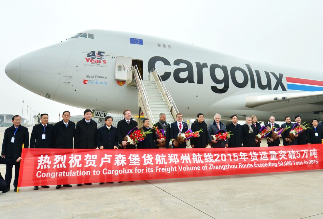 In January 2014, the agreement of HNCA acquiring 35% stake in Cargolux signed; In June, "Zhengzhou-Luxembourg" international freight route opened, Cargolux officially settled Zhengzhou airport with two flights per week. The "Air Silk Road" between China and Europe is opened, the "double hub" strategy of Zhengzhou and Luxembourg showed strong potential for development, and just five months later, the fright exceeded10,000 tons in last November, Cargolux become important new force of Zhengzhou Airport. One year later, from 2 flights per week to 2 flights every day, the fright already exceeded 50,000 tons in this November. The annual freight volume of Cargolux in 2015 is expected to reach 60,000 tons on the basis of its "four first" hard power.