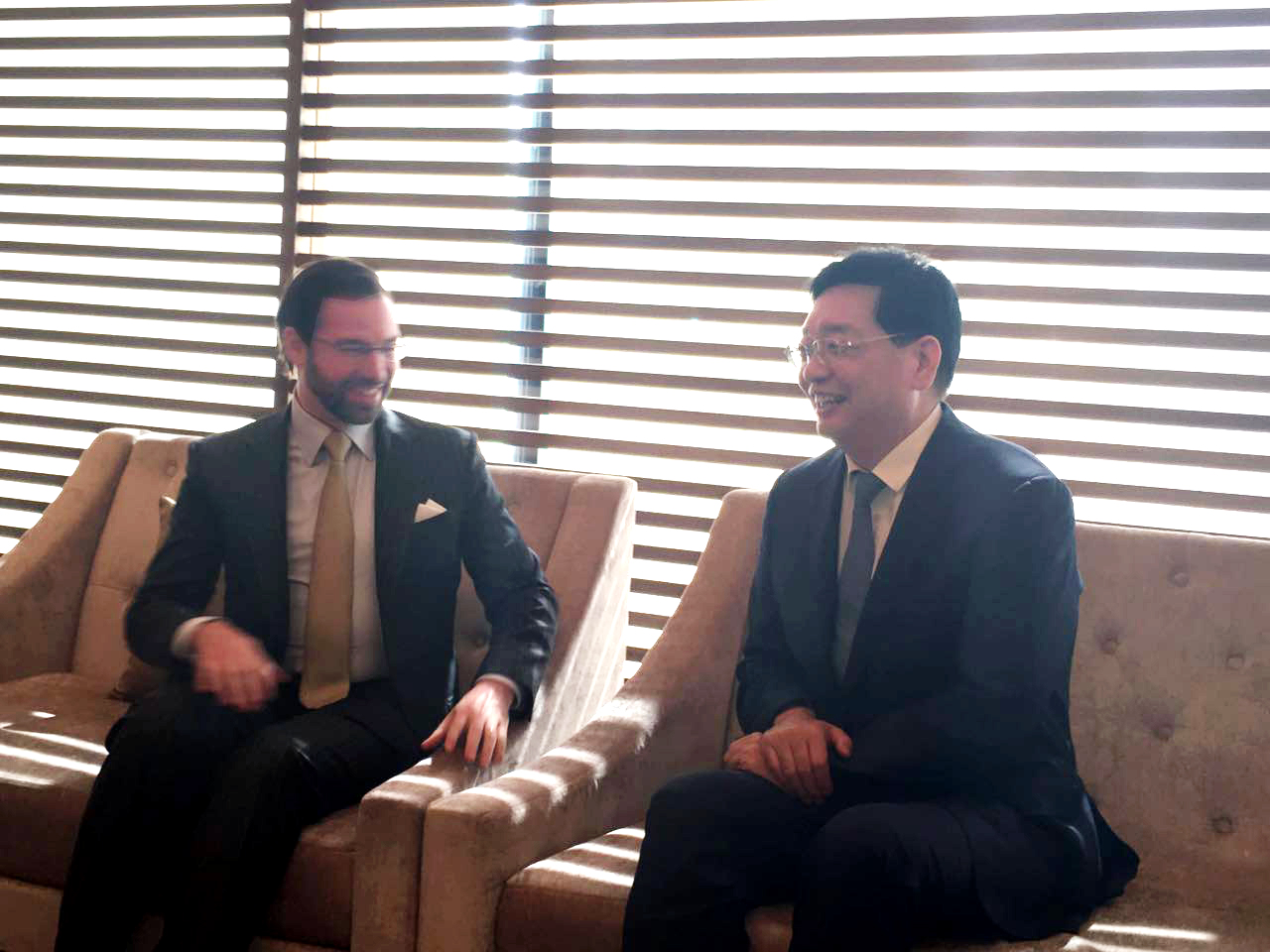 A delegation from the Grand Duchy of Luxembourg, headed by H.R.H Crown Prince Guillaume, H.R.H Crown Princess Stéphanie, and Etienne Schneider, Deputy Prime Minister and Minister for Economy visited Chinaduring 1stto 6th, May. Their visit aims to present the economic development and outlook ofLuxembourg, thus promote the trade relations between China and Luxembourg. On 5th, May, the delegation held a meeting withZhang Mingchao,Chairman of HNCA in Beijing, along withPaul Steinmetz,Luxembourg Ambassador to China,andLuc Decker,Consul General of Luxembourg in Shanghai. They held talks on the issues such asJoint Venture project, “Dual-Hub” strategy and cooperation in new fields.
