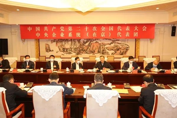 10月18日,黨的二十大中央企業系統(在京)代表團舉行分組會議,認真討論十九屆中央紀委工作報告和《中國共產黨章程(修正案)》。中央企業系統(在京)代表團團長郝鵬參加分組討論,代表團副團長錢智民、余劍鋒分別主持討論。
