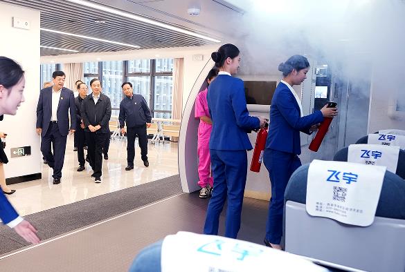 隨后,劉奇葆一行還實地了解了飛行訓練中心和乘務訓練中心。在全動模擬機艙內,劉奇葆仔細查看了內部構造和儀表功能等,并與現場的教員一起進行了試飛。