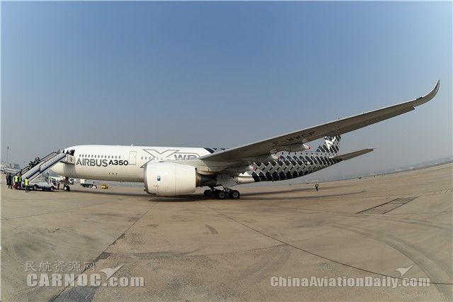 11月2日一架身披碳纖維特殊涂裝的空客A350-900測試飛機(jī)飛抵北京首都國際機(jī)場,并在11月3日進(jìn)行展示。A350是目前世界上最先進(jìn)的遠(yuǎn)程寬體飛機(jī)。北京是空客A350中國巡演活動的第三站,之前這架生產(chǎn)序列號為MSN2的測試飛機(jī)已經(jīng)訪問了珠海和海口,接下來它還將飛抵上海、廣州和成都進(jìn)行靜態(tài)和飛行展示。