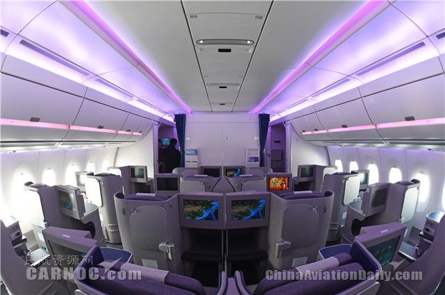 MSN2采用兩級客艙布局,商務(wù)艙擁有42個可全平躺的座位,經(jīng)濟(jì)艙擁有210個座位。A350樹立了最新的乘坐舒適性標(biāo)準(zhǔn),乘客無論身處哪個艙位,都可以獲得更大的個人空間。另外,A350客艙還擁有更大的舷窗、更大的頭頂行李艙,以及最新一代機(jī)上娛樂系統(tǒng)和空中上網(wǎng)功能。