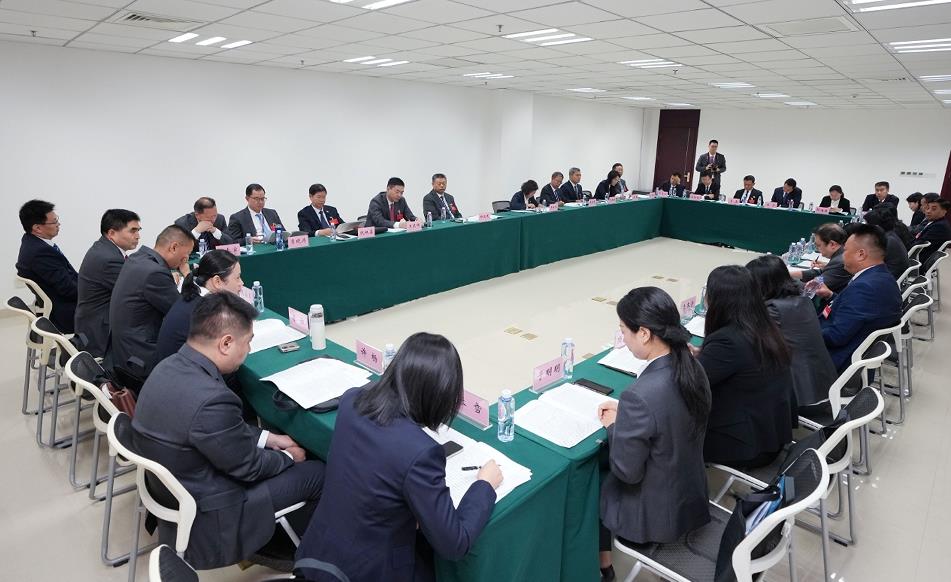 集團(tuán)領(lǐng)導(dǎo)班子成員與代表們討論報告。